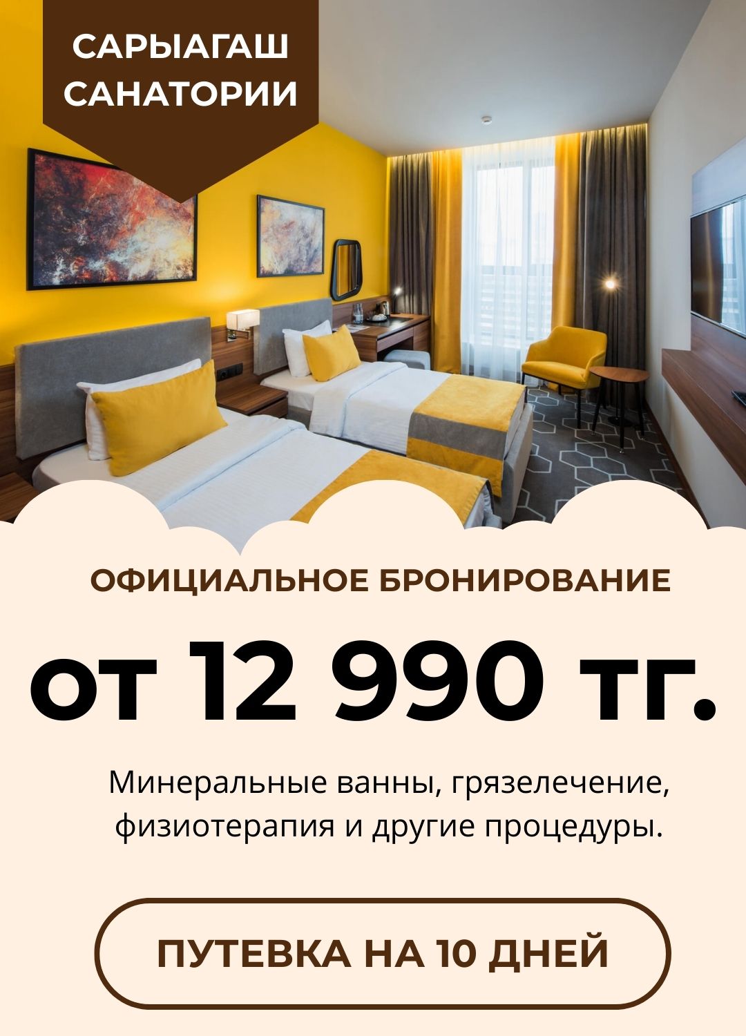 Мы — партнёры санаториев Сарыагаша и работаем напрямую, поэтому гарантируем лучшие цены.